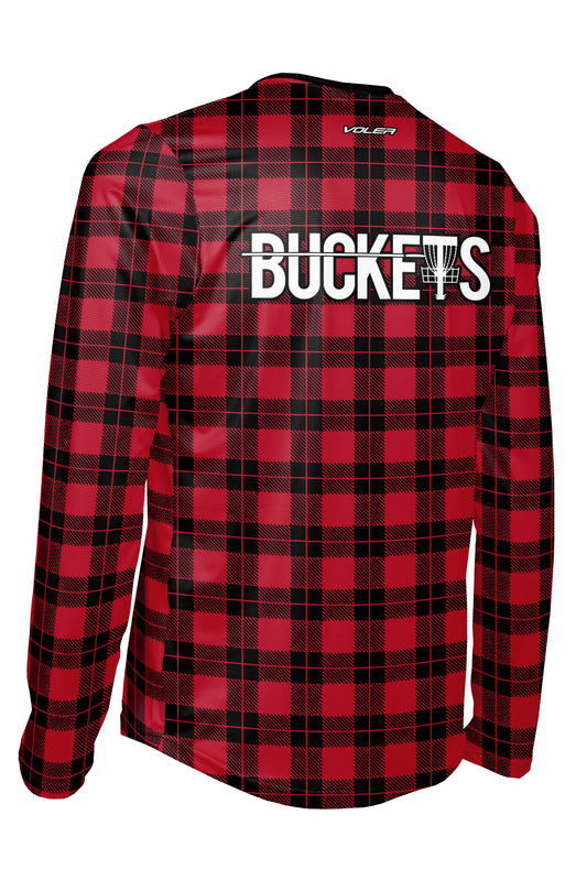 Buckets Disc Golf Jersey - RED PLAID - Long Sleeve